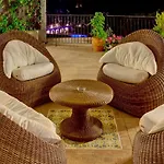 Some of the 41 well-appointed rooms as the hotel face the patio and comprise a balcony and a dressing area. A bidet, a separate toilet, and a shower, along with a hairdryer and a shower cap, are provided.